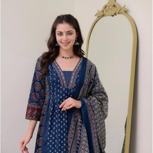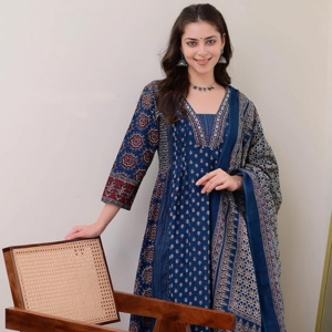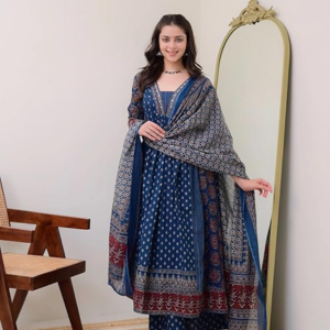 - Style :- Anarkali Kurta | Sleeve Length :- 3/4 Sleeve | Bottom :- Pant Includes a coordinated A-line kurta, ankle-length pants, and a stunning printed dupatta, offering a complete traditional look with minimal styling effort.